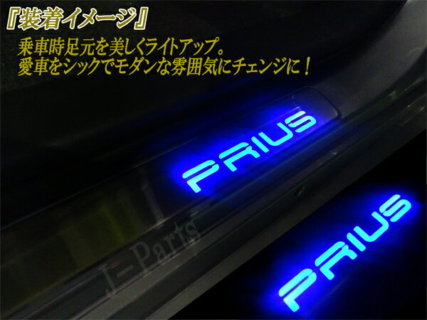 ●プリウス ZVW50/51/55系 ステンレス製ドアスカッフプレート 青色 ブルー色 LED発光タイプセットになります。