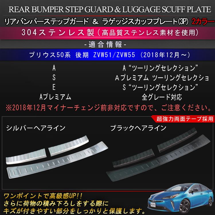 新型 プリウス50系 後期 パーツ ラゲッジスカッフプレート & リアバンパーステップガード 2カラー ドレスアップ カスタムパーツ アクセサリー 内装 トヨタ TOYOTA PRIUS