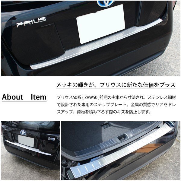 商品説明 プリウス 50系 ステンレス リアバンパー ステップガードリアバンパーの荷降ろしキズ防止に!簡単取付け!強力両面テープ付き! 【注意事項】・取付前に取付面の油分や汚れをしっかり落としてください。