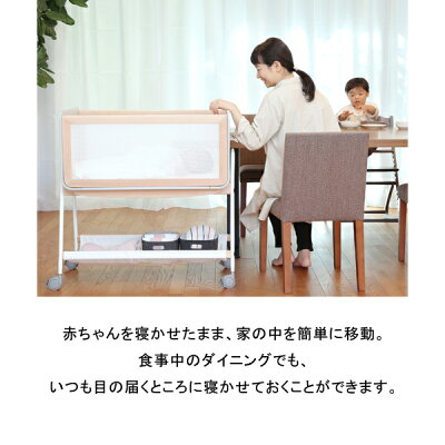 側面はメッシュ仕様なので赤ちゃんの様子もわかりやすく、家事をするときも、いつもそばに赤ちゃんを寝かせておくことができます。