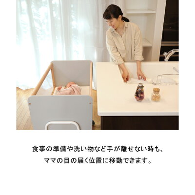 赤ちゃんが寝返りをうてるようになるまでは簡易ベッドやゆりかごとして、その後はおもちゃを入れるトイワゴンとして使うことができる便利なアイテム。